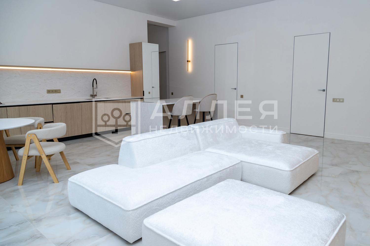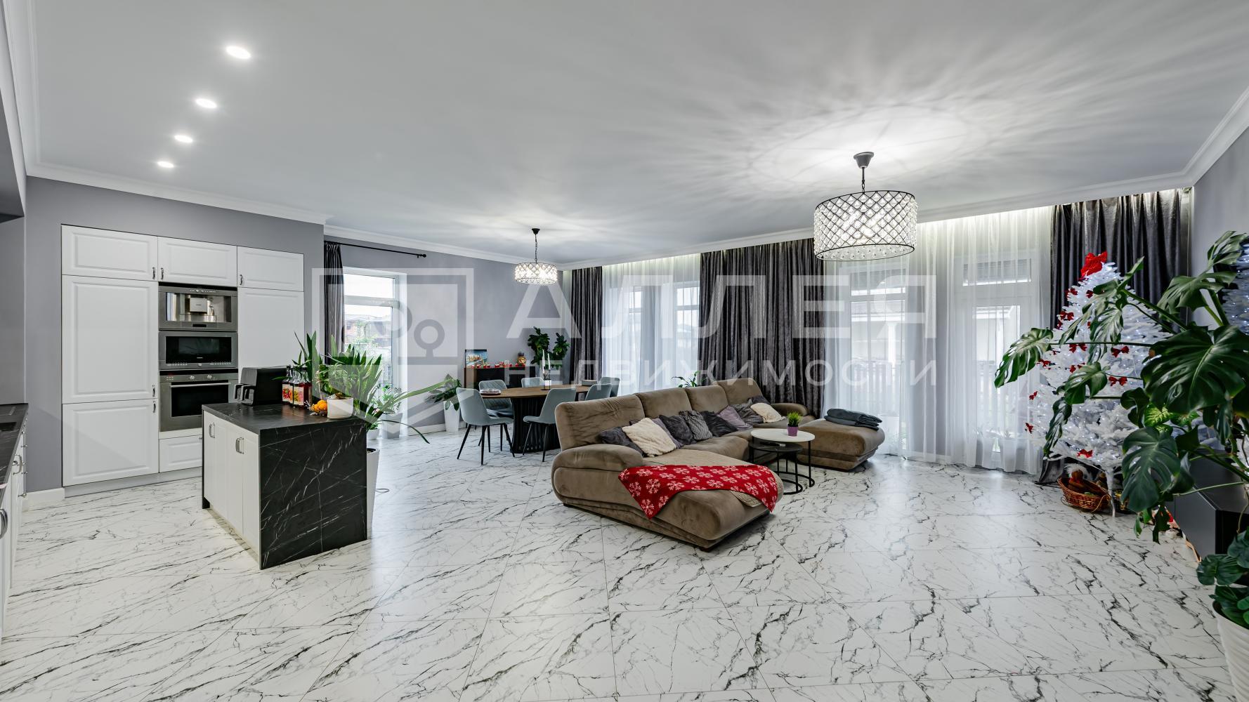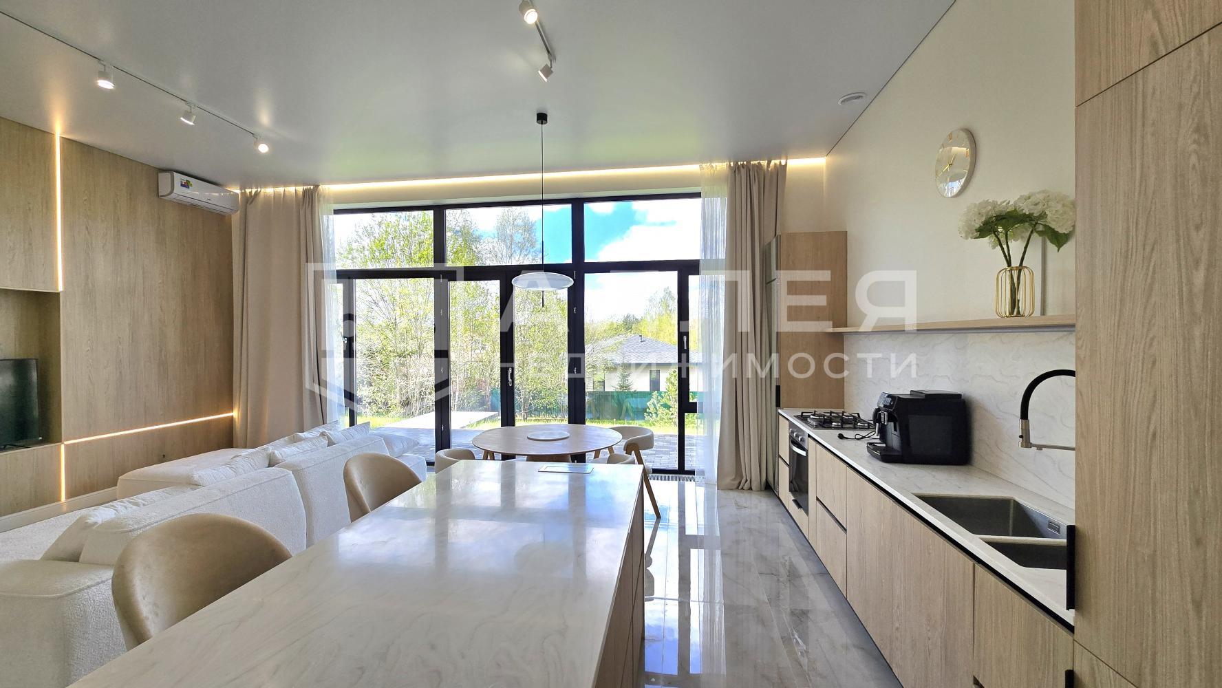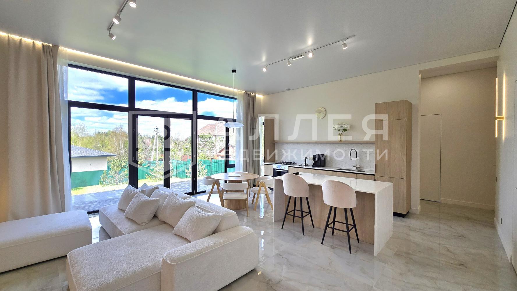 Новый, одноэтажный, комфортный дом. Расположен на тихой тупиковой улице в очень тихом поселке. Больше не надо ходить по ступеням - все на одном этаже: просторная открытая гостиная - кухня - столовая, спальни с санузлами, панорамное остекление в пол с красивыми видами на участок, кондиционеры, теплые полы, высокие потолки более 3м, премиальная техника Kuppersberg, каменные столешницы кухни и острова, постирочная. Из гостиной есть выход на просторную террасу для летнего отдыха. Дом полностью меблирован и готов к комфортному проживанию.