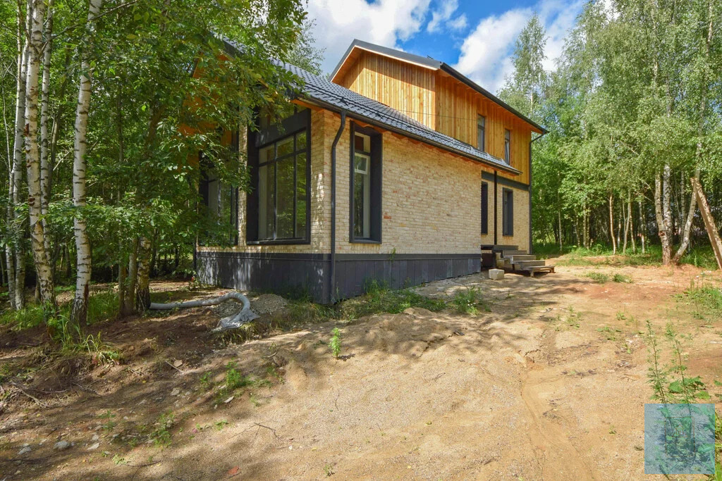"Загородный дом 142 кв.м. на участке 7,4 сотки в д. Гончары, КП Гончарная Слобода. Поселок в окружении соснового леса в 36 км от МКАД по Ленинградскому шоссе или М11. На данный момент в состоянии whitebox. Дом из газоблока 30 см, дополнительно утепленный 3 см. Облицовка - царский полнотелый кирпич + лиственница. Фундамент - монолитная плита на ростверке, перекрытия - монолитные.