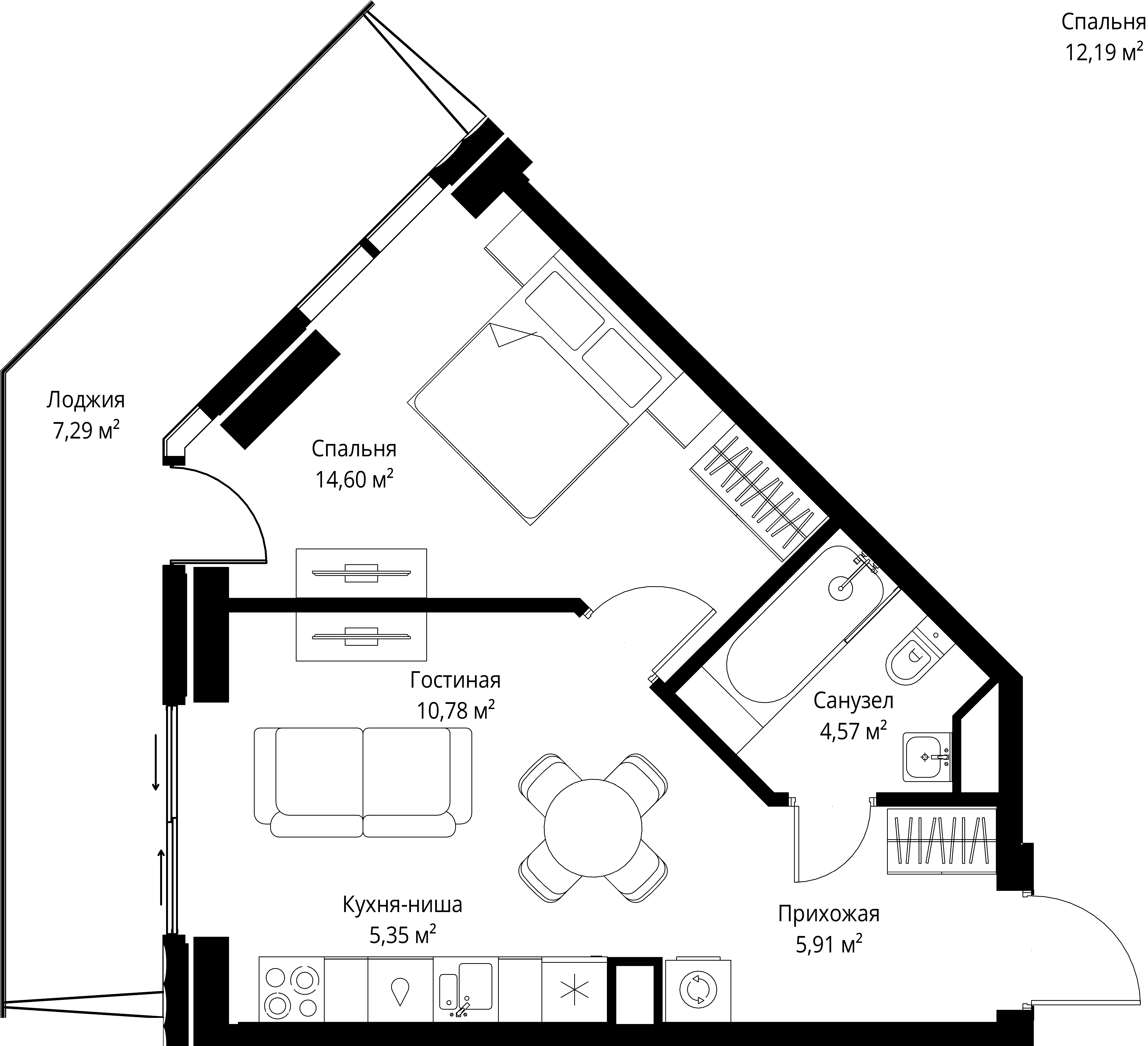 Купить 3к квартиру 60 м² в ЖК Тринити