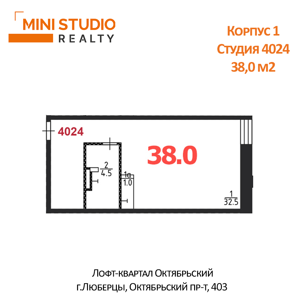 Продается большая студия 38 кв.м в подмосковном городе Люберцы. Собственная огороженная охраняемая территория с парковкой