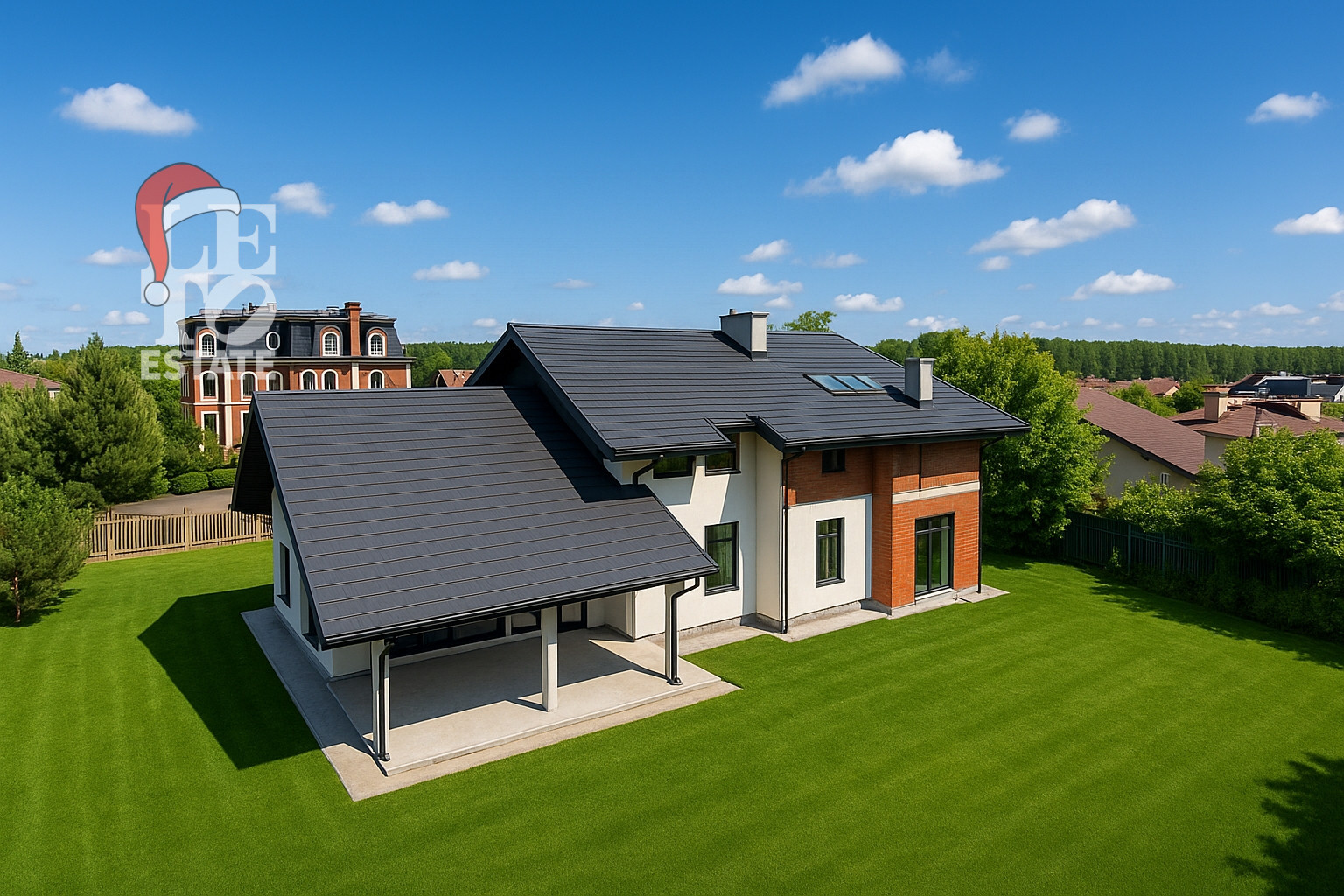 По дому выполнено ряд изменений от состояния типового проекта поселка: заменены все стеклопакеты, уложена новая отмостка, установлен дренаж по периметру участка, создан навес на террасе, заменена кровля (в том числе утеплитель, свес кровли) и увеличена высота потолка на втором этаже, выполнены межкомнатные перегородки. К дому подведены все центральные коммуникации, газоснабжение согласовано, газ заведен в котельную с установкой двух котлов Viessmann и Valiant, и на кухонное пространство. Хорошее расположение участка, площадью 20 соток, предполагает выполнить красивое ландшафтное пространство.