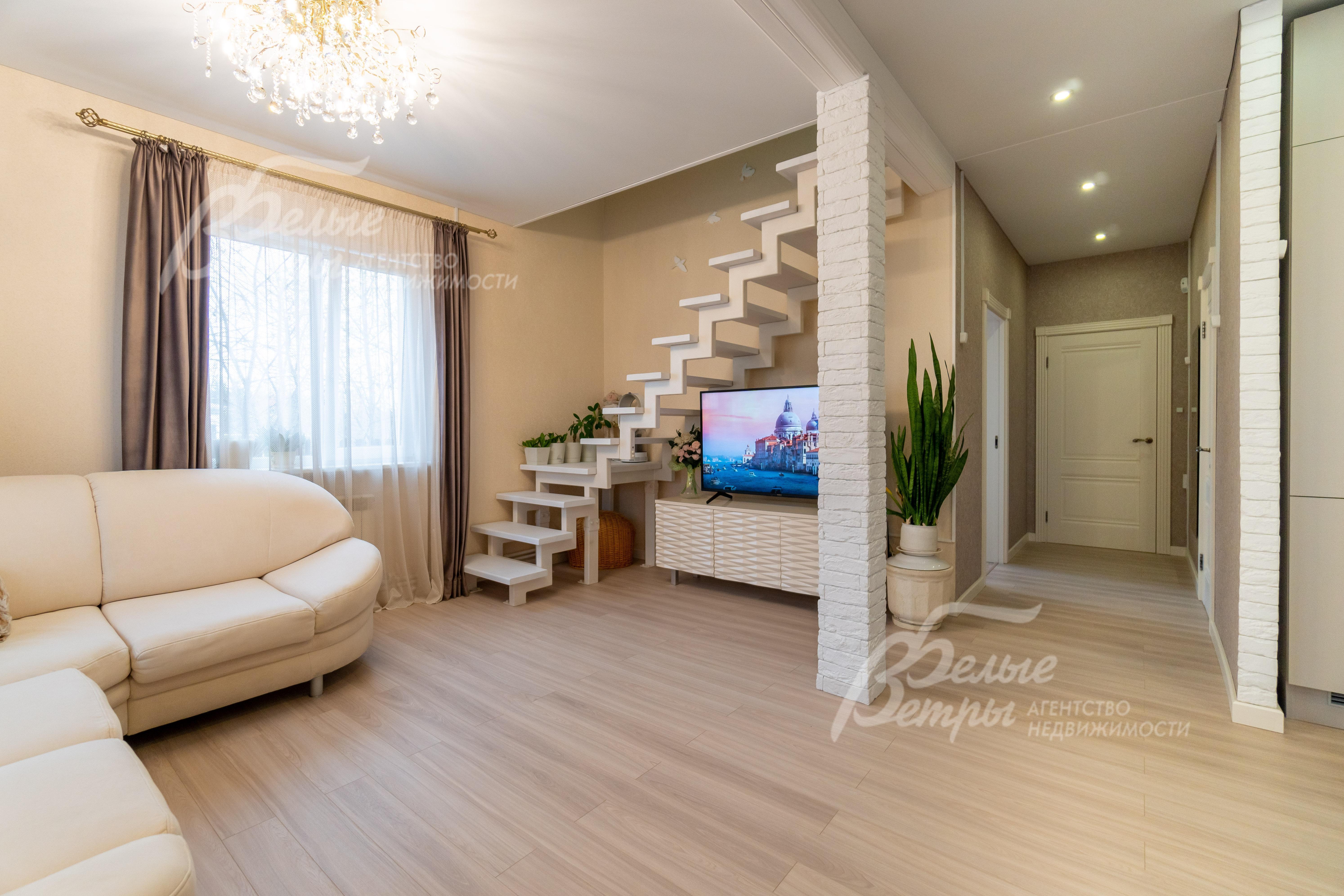 Двухэтажный коттедж 130 м2 с готовой отделкой. Дом расположен в современном охраняемом коттеджном поселке Март Хаус 2.0 в 3 км от Москвы.