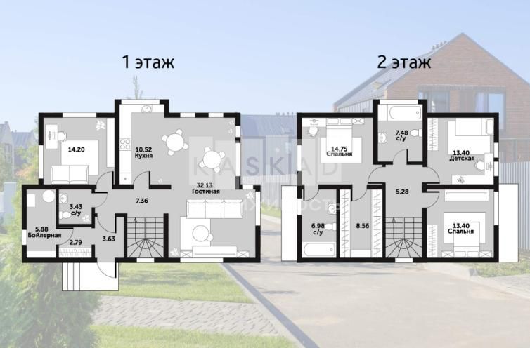 - Планировка: кухня-столовая, 3 спальни, гардеробная. бойлерная и