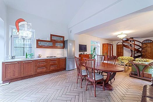 - Планировка: кухня-столовая совмещенная с гостиной, 3 спальни, гардеробная, сауна и 2 санузла.