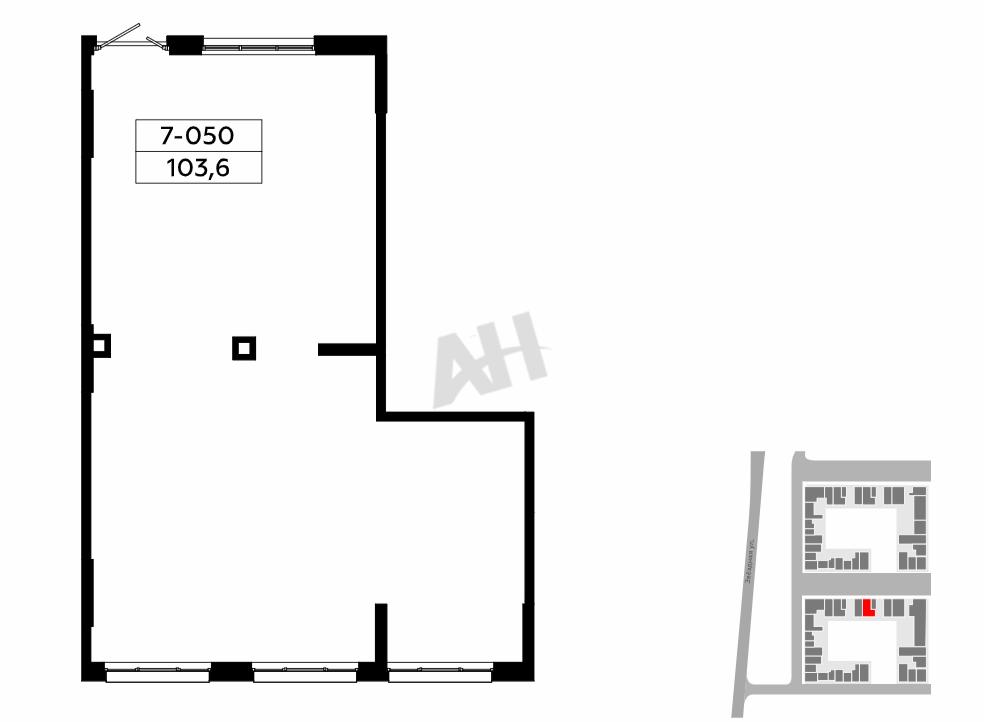 Основные характеристики помещения: площадь 103,6 кв. м, свободное назначение, отсутствие отделки, высота потолков 5,06 м, разрешенная мощность 20,72 кВт. Система вентиляции представлена каналами 150x150 и Ø100. Помещение имеет один вход, расположено на одном этаже и не оснащено витринным остеклением. Прогнозируемая проходимость составляет от 88 до 317 человек в час (по данным «Геоаналитика BestPlace»).