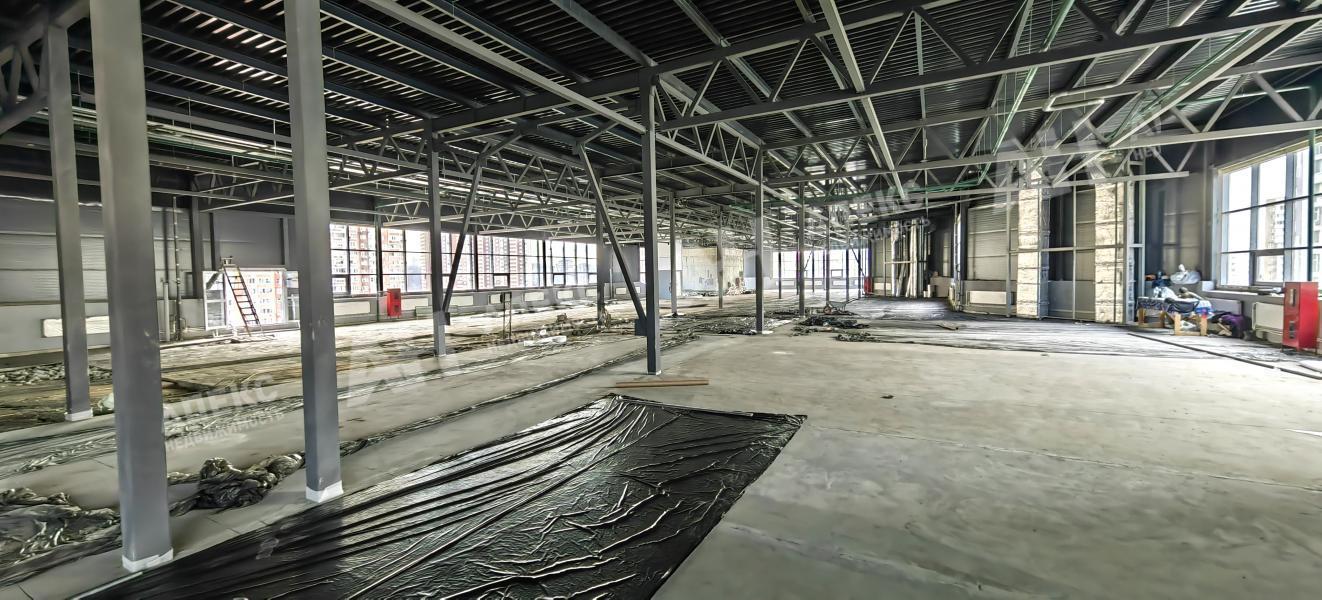 Помещение имеет свободную открытую планировку с выровненным полом и высотой потолков 4,5 метра. По периметру установлены новые окна. Для удобства загрузки и перемещения предусмотрен грузовой подъемник по внешней стороне здания грузоподъемностью 2,5 тонны, а также три пассажирских лифта. Отдельным преимуществом является возможность прямого въезда автомобиля на этаж и внутрь помещения.