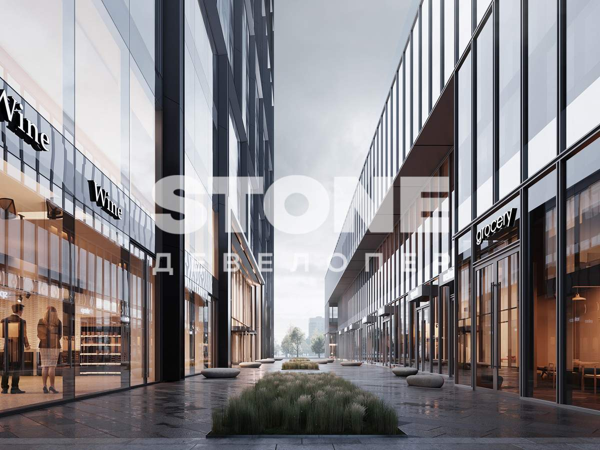 Концепция проекта предусматривает благоустройство территории. В частности, между бизнес-центром и торговой галерей появится благоустроенный пешеходный бульвар, формирующий коридор ритейла, что станет дополнительной точкой притяжения.