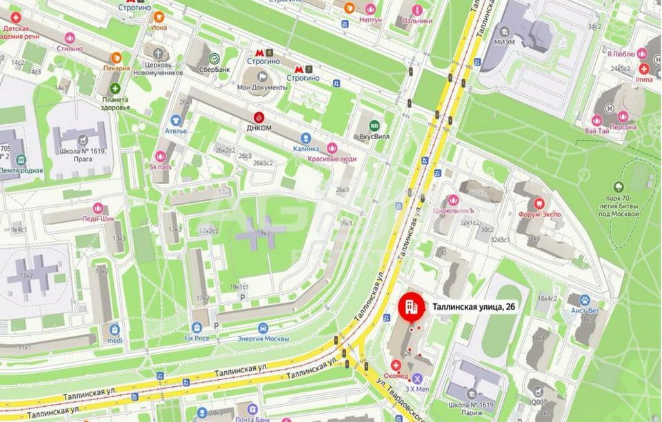 Торговое помещение на ул.Таллинская, в 5 минутах пешком от метро Строгино (СЗАО, р-н Строгино). 1-й этаж встроенно-пристроенной части 17-ти этажного жилого дома. Площадь помещения 110 м2, отдельный вход с фасада, витринное остекление, высота потолков 3 м. Планировка смешанная. Подведены все центральные коммуникации, есть собственный с/у. Возможность сделать вывеску на фасаде. Рядом располагается стихийная парковка. Хороший трафик.