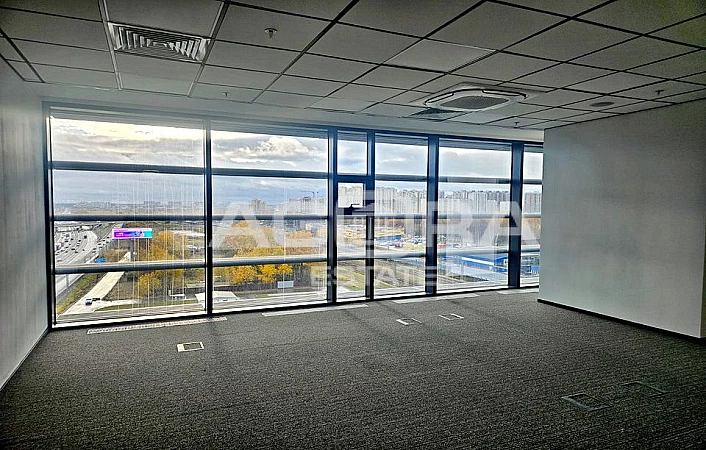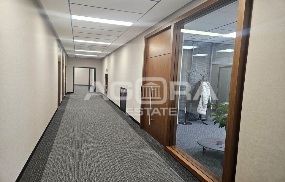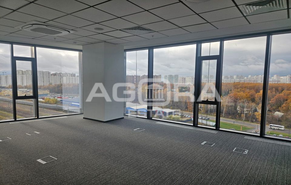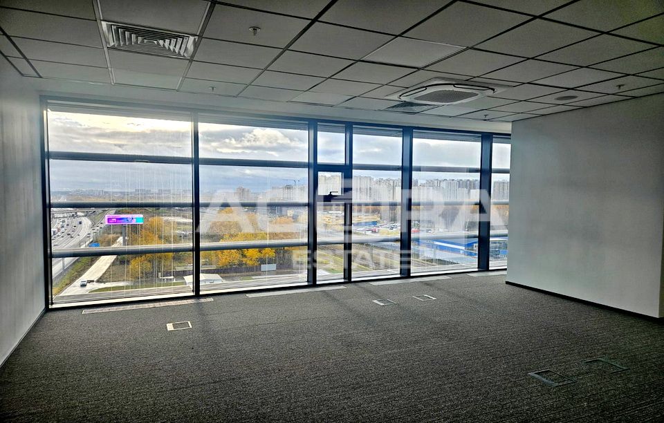 Панорамное остекление, Стандартная офисная отделка: потолок армстронг, освещение, стены окрашены в светлые тона, плиточный ковролин, стеклянные перегородки и др., электрические сети разведены .