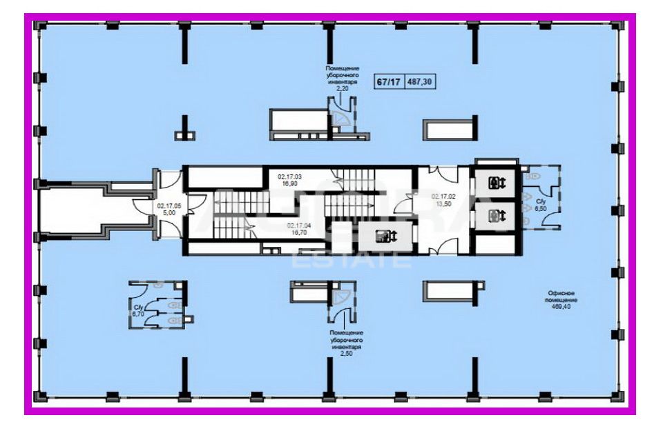 Площадь офиса 487,3 м2, 17-й этаж 21 этажного Бизнес центра (готовность - 4 квартал 2025 года). 4 отдельных входа в помещение, офис занимает целый этаж, с панорамным остеклением (28 окон), высокие потолки 3.32 м, открытая планировка с зоной кухни и собственным с/у, состояние – без отделки. Подходит для размещения представительства компании или для рабочего офиса широкого спектра индустрий и различных бизнес-направлений.