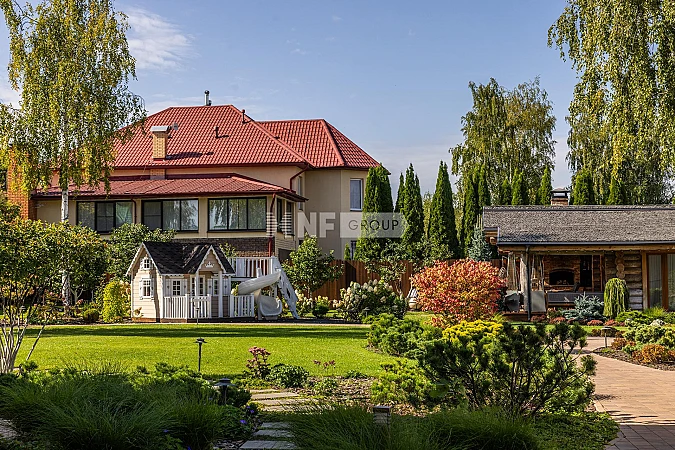 На участке выполнены ландшафтные работы, разбит уникальный по красоте сад. Рядом с домом размещена аутентичная русская баня.