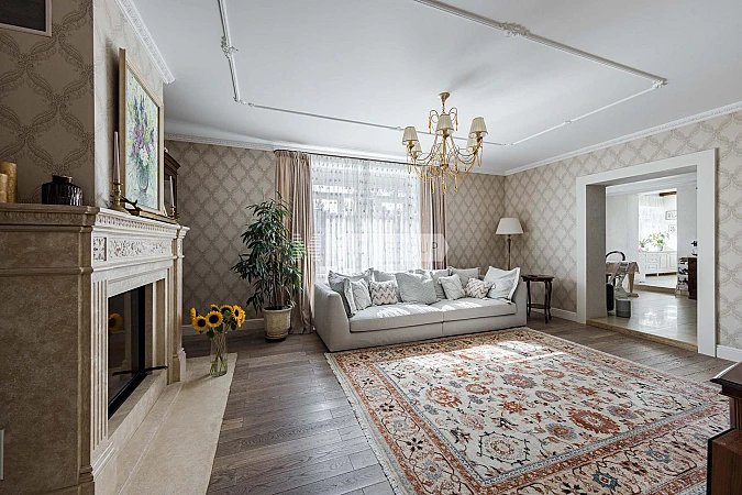 Уютный дом в коттеджном поселке "Уварово" в 25 км от МКАД по Киевскому шоссе. Грамотно продуманная планировка создает гармоничное пространство, где каждая деталь способствует удобству. В доме вы найдете просторную гостиную, кухню, уникальную чайную комнату, библиотеку и изящные спальни. Комнаты наполнены естественным светом, а практичное зонирование позволяет каждому члену семьи найти своё место для отдыха и работы. Отделка дома выполнена из высококачественных материалов, стены – кирпич, окна – 2-х камерные стеклопакеты, монолитный фундамент, железобетонные перекрытия. В интерьере преобладают натуральные материалы, в частности дерево. Спокойные оттенки, текстиль и предметы декора добавляют пространству гармонии и уюта. Дом сочетает в себе стиль и функциональность.