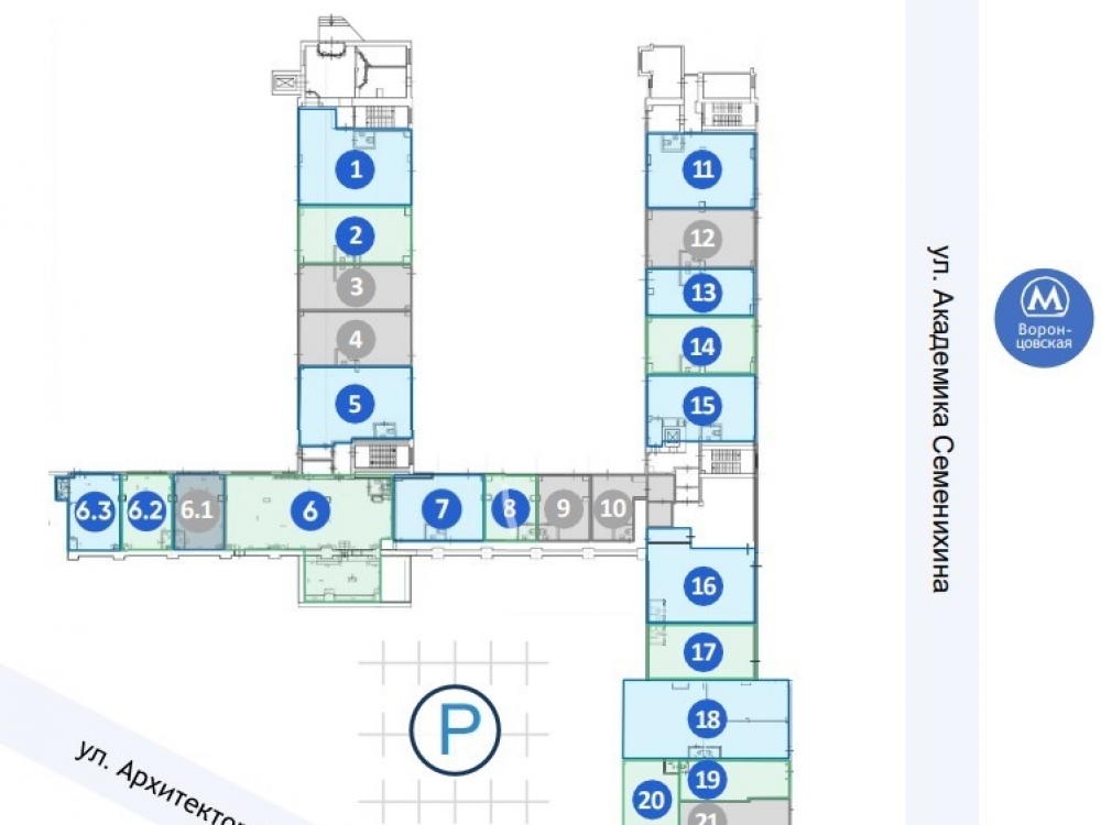 . Бизнес-центр расположен в р-не Коньково (ЮЗАО) в 30 м от входа в метро «Воронцовская»