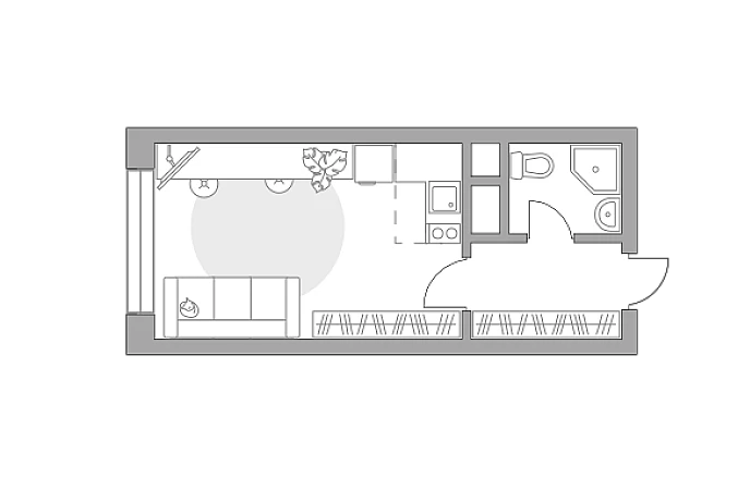 Жилая площадь 14.44 м2, кухня 1.87 м2, чистовая отделка, комнаты смежные, окна выходят во двор.