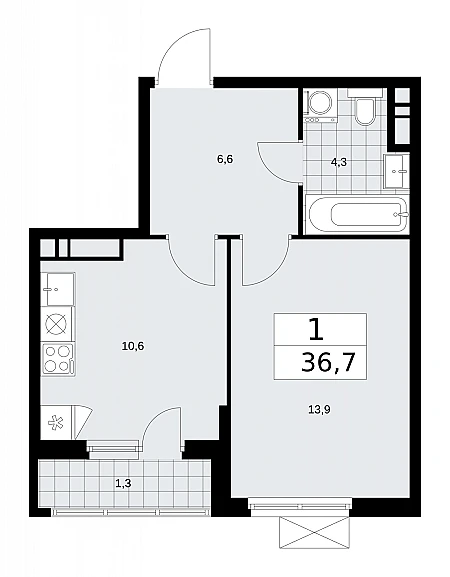 Жилая площадь 25.2 м2, кухня 4.3 м2. Площадь комнат: 13.60/11.60 м2, чистовая отделка.