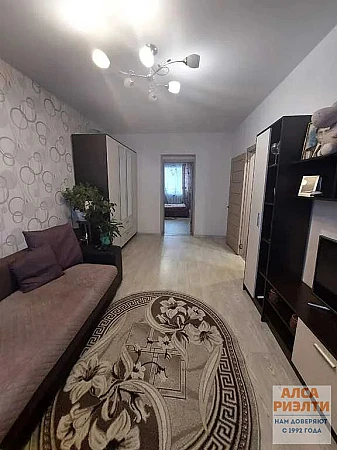 Квартира расположена на первом этаже 2-х этажного дома. Общая площадь 47,1 кв. м, жилая 33 кв. м (18 кв. м и 15 кв. м), кухня 6 кв. м, СУ раздельный. Квартира в хорошем состоянии, остается вся мебель.