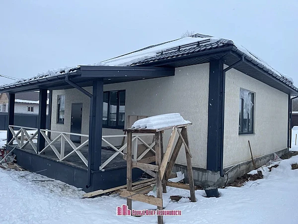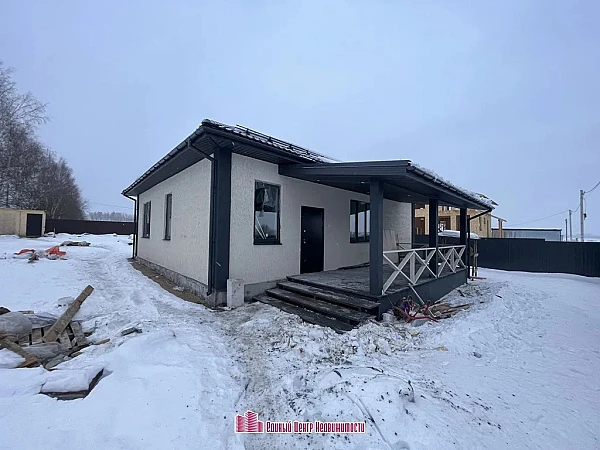 Дополнительное описание: Участок 5 сот., ровный, правильной прямоугольной формы 20х26м, огорожен забором из профлиста цвета RAL 7024 (графит) с распашными воротами. Новый готовый дом, предназначенный для круглогодичного проживания с отделкой White Box, с огромной крытой верандой и всеми необходимыми коммуникациями! Фундамент: Ростверк + монолитная плита. Полы: утепление 100мм пеноплекс + водяные теплые полы в полу-сухой стяжке. Все внутренние стены 100мм. Стены выполнены из газобетонных блоков Bonolit 300мм с утеплением пеноплексом 100мм + фасадная штукатурка. Кровля металлочерепица. По дому разведено электричество, установлены розетки, выключатели, водоснабжение (скважина 47 метров, вода питьевая), канализация (септик био-станция), отопление электрическим котлом с радиаторами и водяными полами!!!. В комплект к дому прилагается водонагреватель на 100 литров!. Условия приобретения: Ипотека (семейная ипотека; it-ипотека); альтернативная продажа (помощь в реализации вашей квартиры, под покупку дома) и т.д.