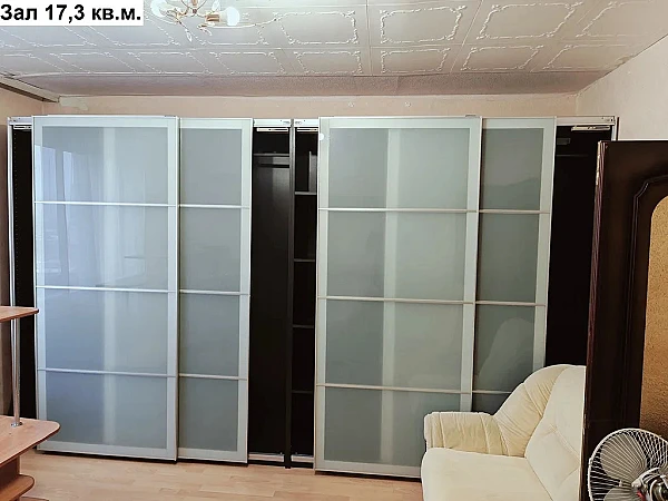 Квартира площадью 56 кв. м. (в ергн 52, 7 кв. м. ). зал 17, 3 кв. м. (шкаф-купе 4 секционный, кондиционер, стол компьютерный, тумба, журнальный столик, люстра), комната 13, 3 кв. м. с лоджией 3, 3 кв. м, кухня 8, 6 кв.м. (кухонный гарнитур, варочная панель, духовой шкаф, вытяжка, кухонный уголок, стулья, столик на колесах), коридор 9 кв.м, ванная 3,1 кв.м, раздельный санузел 1 кв.м.