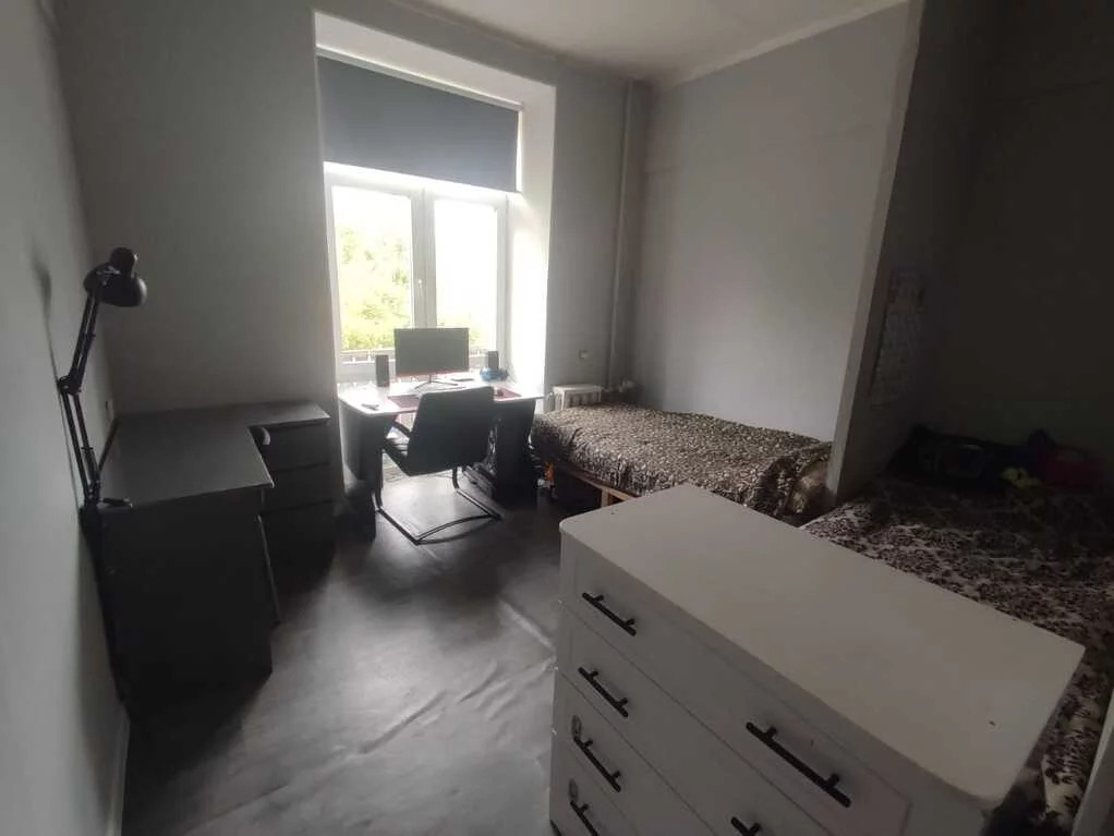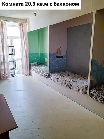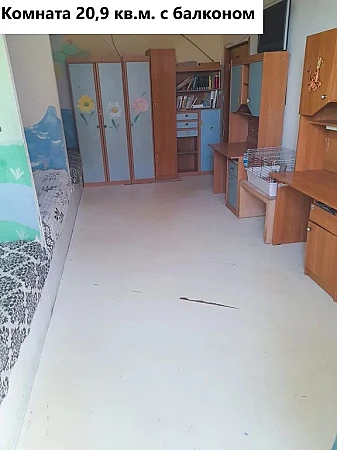 Комната 21 кв. м. (встроенные кровати-подиумы без матрацев, этажерка, большой плоский телевизор philips), спальная комната 13, 5 кв. м. (высокий шкаф-купе), кухня 9 кв.м. (кухонный гарнитур, плита газовая Bosch, машинка посудомоечная Bosch), ванная комната 3 кв.м, санузел 1,7 кв.м, коридор 3,1 кв.м, встроенный шкаф 0,6 кв.м.