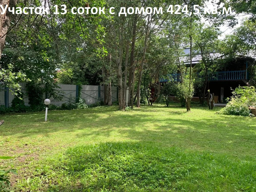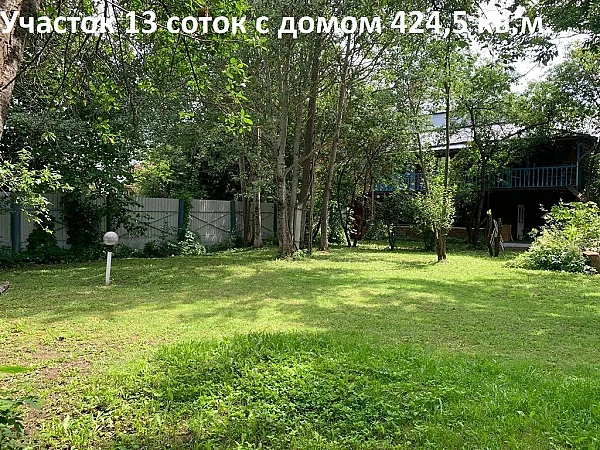 Участок 13 соток сухой, ровный. Участок огорожен забором из профнастила по периметру участка. Плодовые деревья: 5 яблонь, 4 груши, 3 сливы, 13 вишней. Дуб. Кусты. Забор металлический на кирпичных столбах.