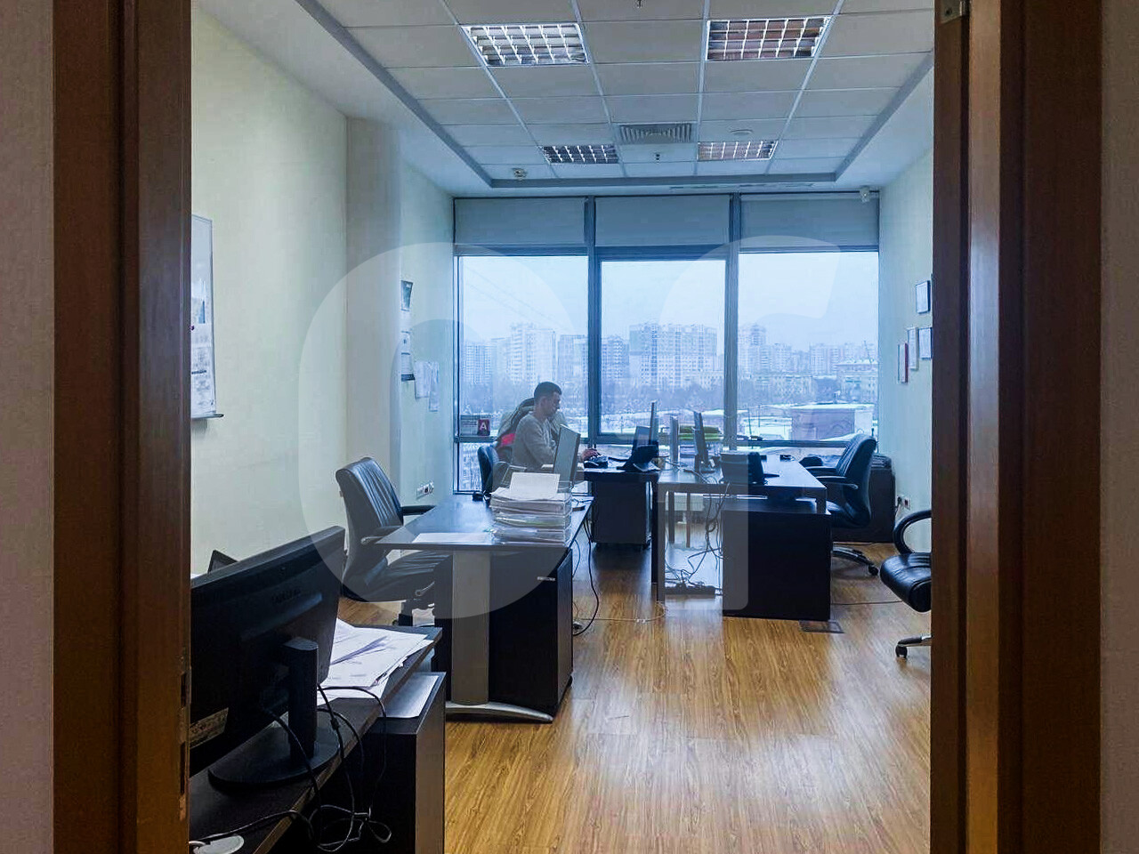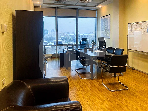 Офис обладает современной отделкой и включает open space, переговорные комнаты, кухни и санузлы. Высота потолков составляет 2,8 метра. Планировка функциональна и предусматривает зоны для командной работы и приватных переговоров.