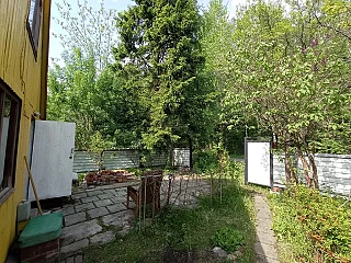 Участок 6 соток правильной прямоугольной формы: хоз блок (из бруса, который можно переоборудовать в баню), парковка на несколько автомобилей. Участок огорожен забором.