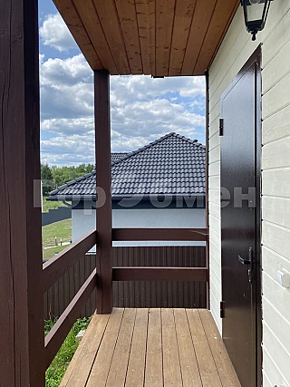 Описание дома: Дом из бруса с внешней стороны обшит сайдингом, с утеплителем, крыша покрыта металлочерепицей.