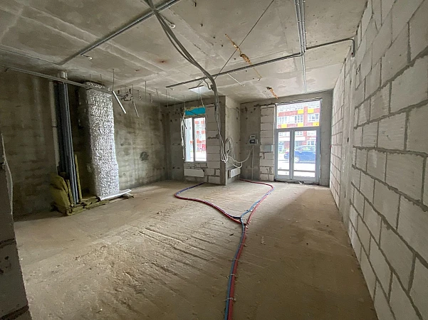 Нежилое помещение в новом монолитном доме. Благоустроенный двор с детскими и спортивными площадками. Во дворе всажены деревья, цветы и кустарники