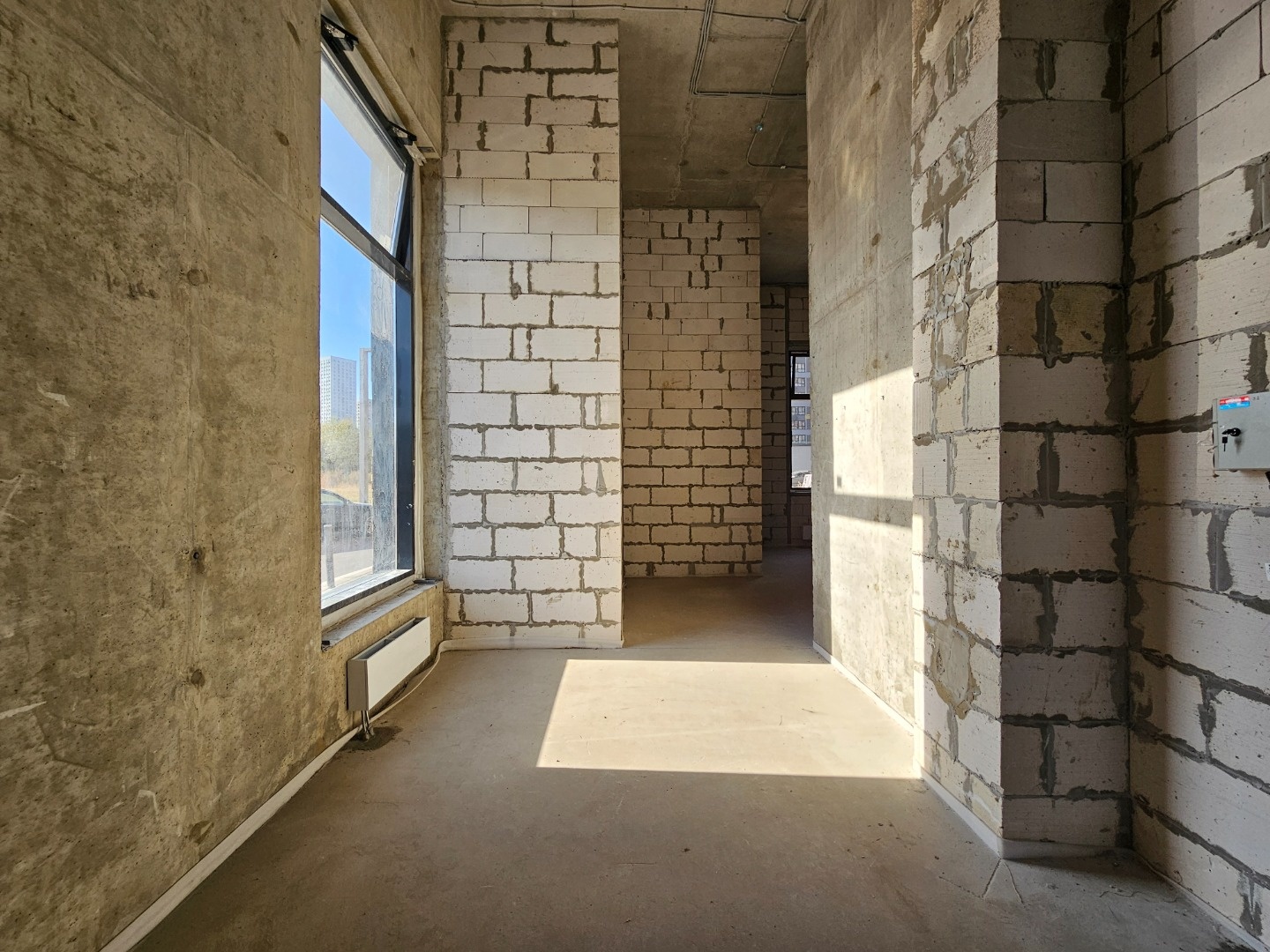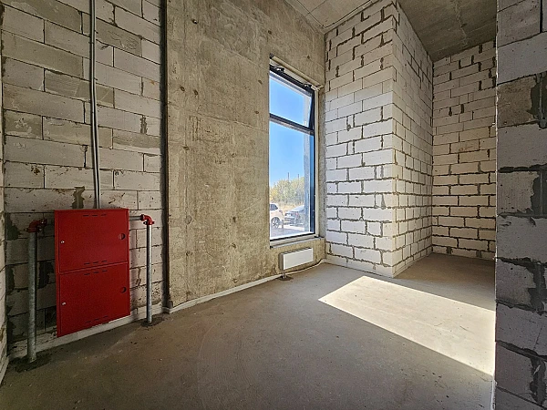 Объект в новом монолитном доме. Большие витражные окна, высокие потолки
