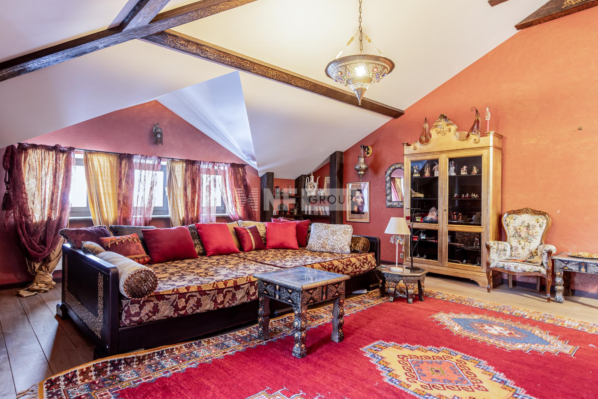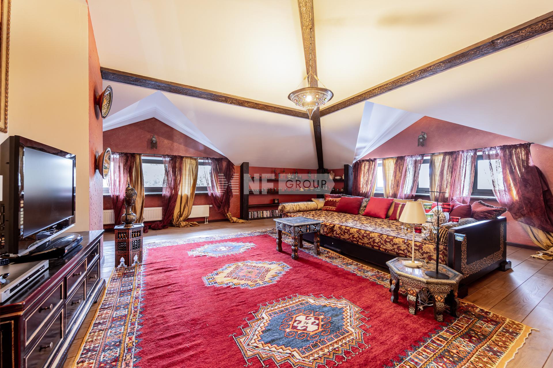 Роскошный загородный дом площадью 615 кв.м. Участок 19 соток расположен в живописной прилесной зон в 28 км от МКАД по Рублево-Успенскому шоссе. Планировка дома продумана с учетом всех деталей для удобства проживания. На первом этаже находится просторный холл, уютный кабинет, лифт, каминный зал с выходом на террасу, кухня-столовая с прилегающей кладовой, а также гараж, рассчитанный на два машино-места. Особое внимание уделено зоне SPA, где находятся бассейн длиной 17 метров, сауна и душевая, откуда также есть выход на террасу. На втором этаже находятся две спальни с санузлами, хозяйская спальня с собственной гардеробной и ванной комнатой, постирочная и восточная комната отдыха.