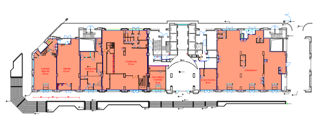 Общая площадь: 532 м2 (1 этаж- 302 м2; Антресоль- 230 м2)