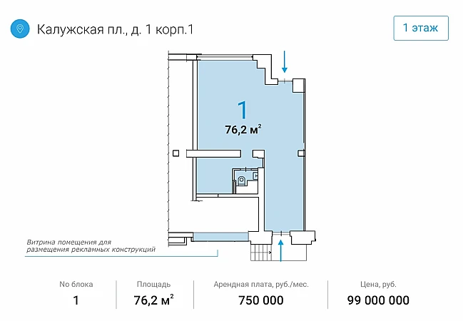 Купить торговое помещение 76 м²