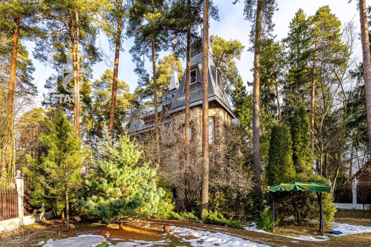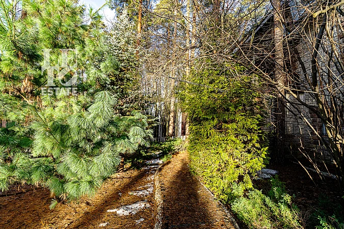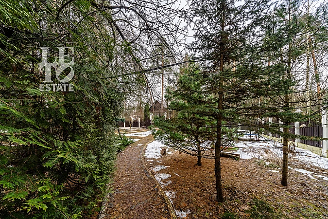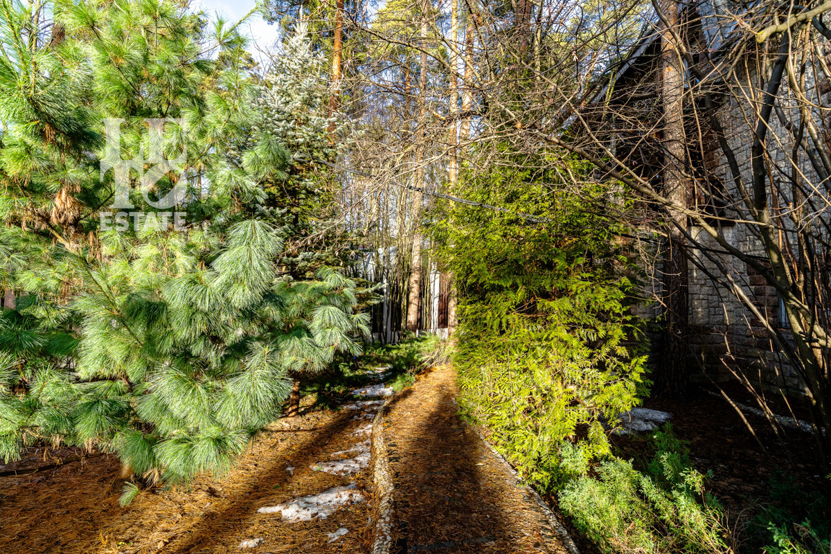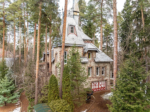 Дом выполненный из бруса и облицованный декоративным камнем, который сразу привлекает внимание своей архитектурой и утончённым стилем. В доме находится 7 уютных спален, каждая из которых обладает панорамным остеклением. На каждом этаже имеются ванные комнаты, а для гостей предусмотрен отдельный этаж со своими спальнями и санузлами. Большие окна в каждой комнате наполняют пространство светом и открывают вид на вековые сосны. Просторная гостиная с камином, вторым светом и потолками высотой более 8 метров создают ощущение лёгкости и уюта. На первом этаже имеется выход на веранду для вечеров с друзьями и гриля, а на вершине башни расположилась зона для уединения и медитации. Кухня оснащена всей необходимой техникой, а в столовой с большим деревянным столом могут разместиться до 12 гостей. Участок окружён живой изгородью, пение птиц и тишина подчёркивают приватность и спокойствие этого места.
