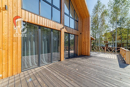Особенностью дома является наличие широкоформатного остекления, что подарит будущему хозяину ощущение простора, дополнительное естественное освещение всего дома и потрясающий вид на сосновый бор.