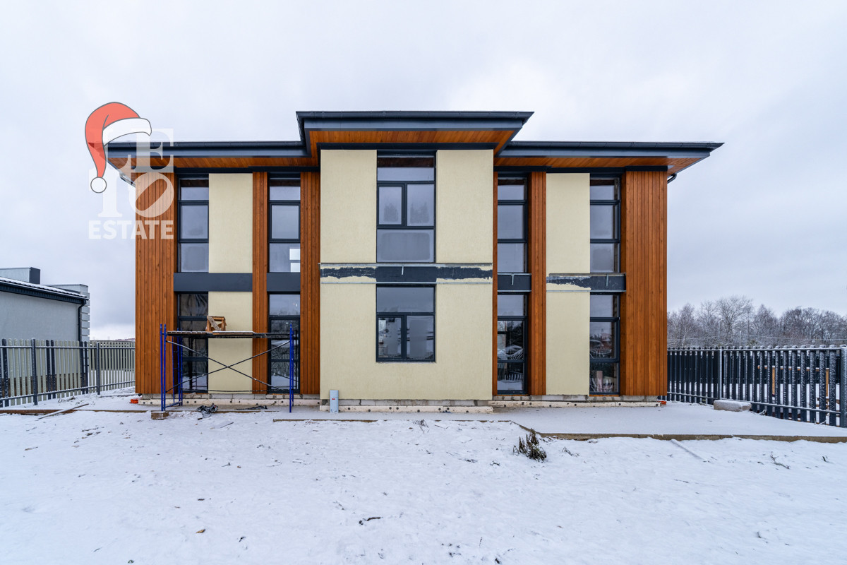 Дом построен из газоблока 400 мм, межэтажные перекрытия железобетонные 200 мм. Дом выполнен в современном стиле. Дом представлен без отделки.