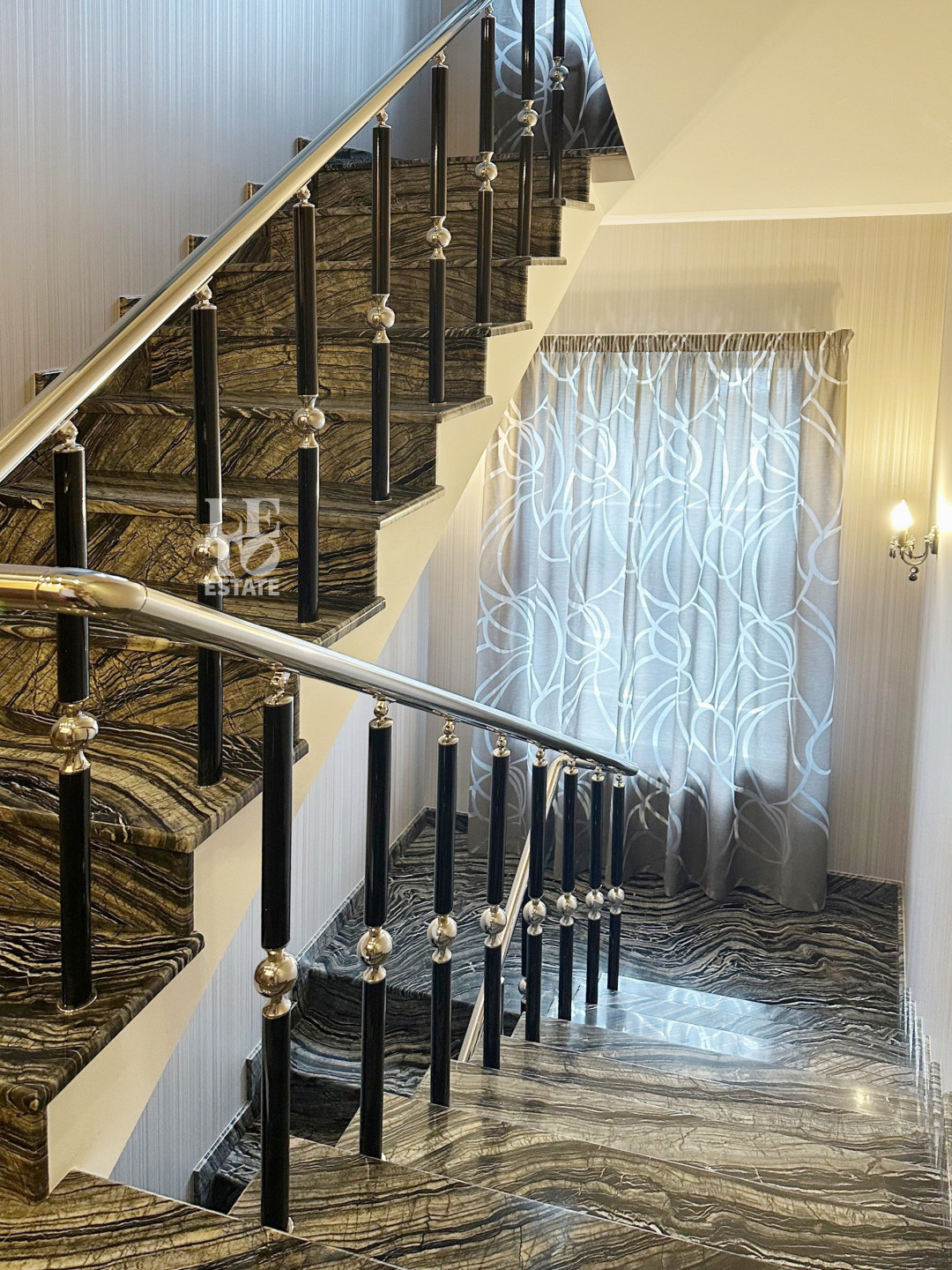 Таунхаус продается с кухонной мебелью и сантехническим оборудованием. Отделка выполнена в стиле ар-деко.