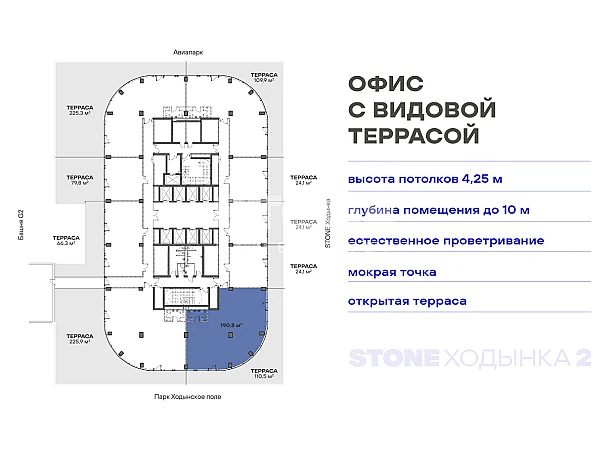 Уникальный формат коммерческой недвижимости - офисы с террасами от 80 кв. м в составе премиального офисного квартала STONE Ходынка 2 с прямым выходом в парк Ходынское поле.