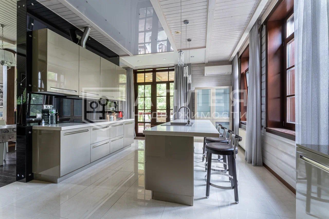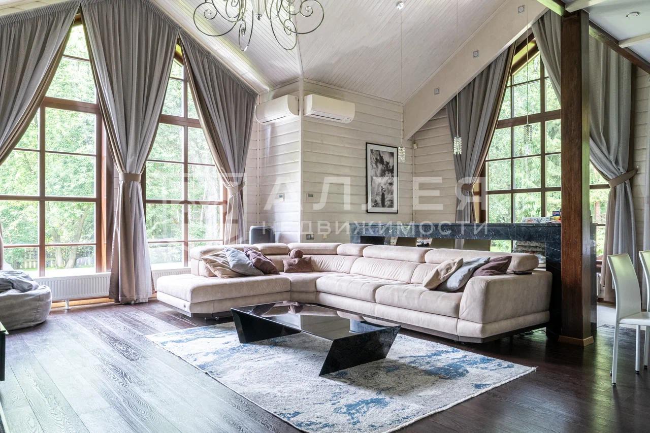 Новый современный дом с высокими потолками до 3.3 метров и панорамными окнами. Дом светлый и тёплый. Выполнен дом в архитектурном стиле Райта, с продуманной планировкой, включающей в себя гостиную, гардеробную, столовую с кухней, 4 спальни и кабинет.
