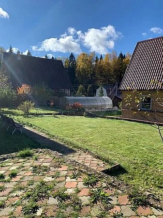 живописный лес с грибами и лесной живностью. непосредственно сам дом находится в жилой