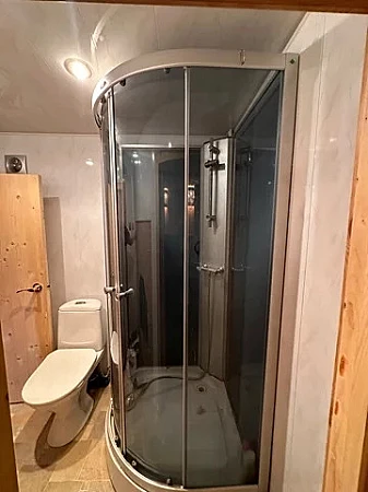 Дом-баня построена в 2002 году из бревна, не поверите она почти новая. Общая площадь 64 кв.м без учета второго этажа ( где расположены накопители воды). Баню можно использовать для постоянного места жительства, в дом-бане есть две современной печи. На первом этаже прихожая, кухня, спальня, санузел с душем, парилка. В доме заменена крыша, мебель остается.