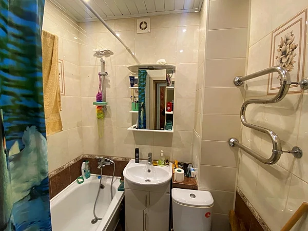Общая площадь 28, 7 кв. м. , кухня 7 кв. м. Санузел совмещен, в кафеле. Окна ПВХ. На полу ламинатная доска. Надежная металлическая дверь. Состояние квартиры хорошее. Нужно только доклеить обои в коридоре и в комнате.