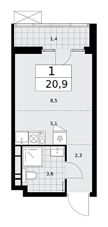 Купить 1к квартиру 20 м² в ЖК Деснаречье