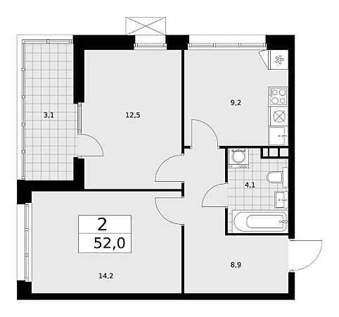Купить 2к квартиру 52 м² в ЖК Деснаречье