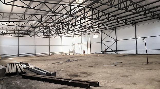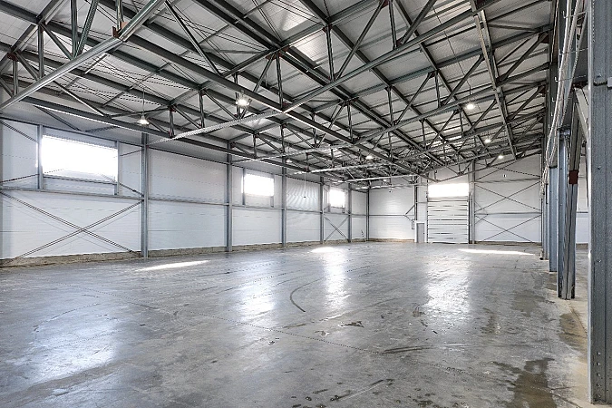Теплый склад площадью 1460 кв.м., подходит для хранения или небольшого производства. Выделенная электрическая мощность — 150 кВт. Заведена вода и канализация построены для санузла.