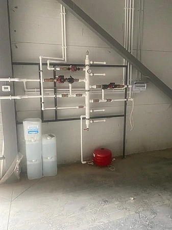 Строительные материалы зданий образуют конструкцию "термос" - фасадная панель 120 мм, внутренние перегородки 100 мм, крыша из 100 мм минваты и 50 мм пенофлекса.