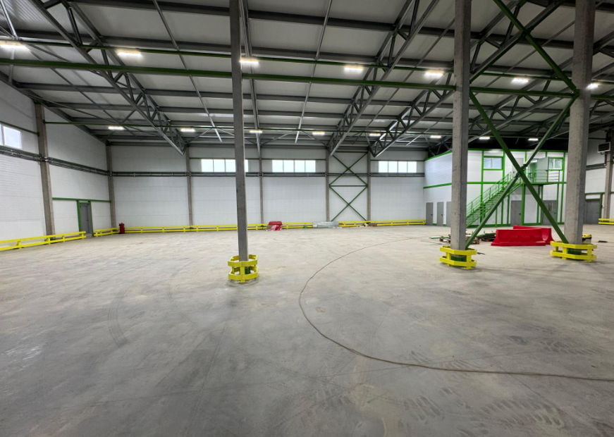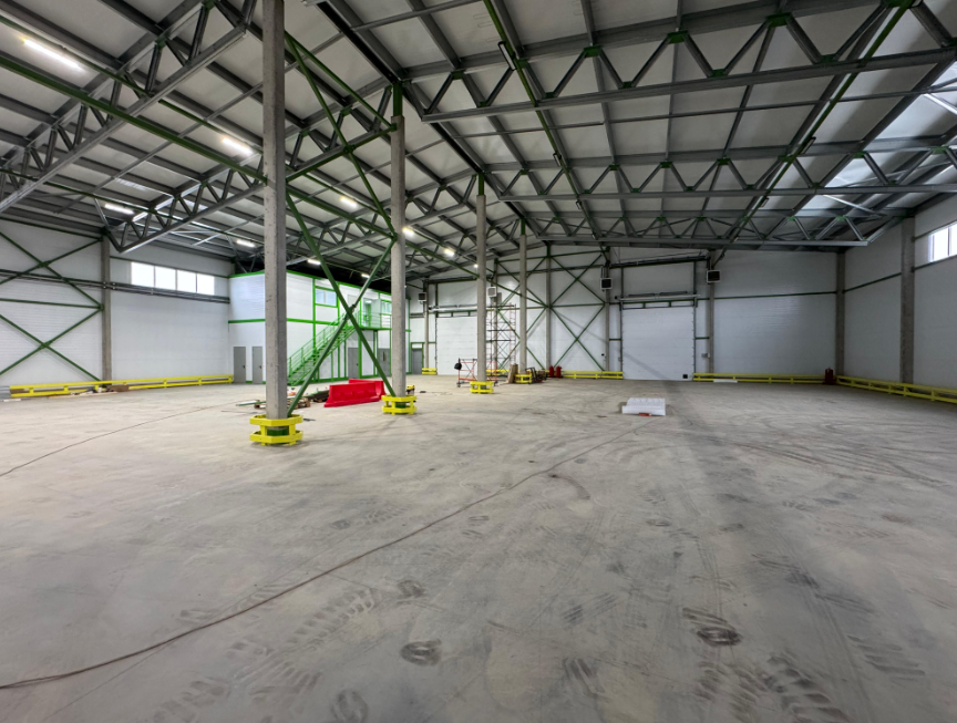 Высота потолков 8м до фермы, 10м в коньке.