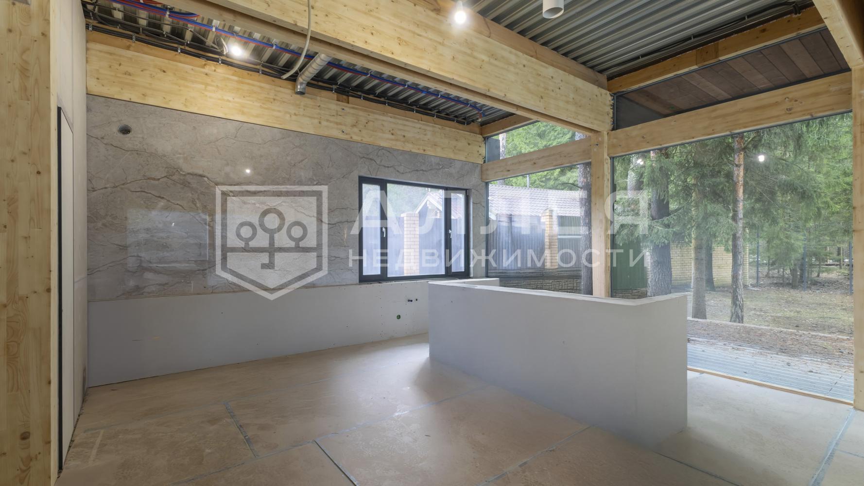 Новый дом с панорамными окнами на участке с вековыми соснами в охраняемом поселке. Дом построен по немецкой технологии Fachwerk и полностью готов к проживанию. За счет панорамного остекления из всех окон открывается шикарный вид на лес. В доме современная и функциональная планировка. Высокие потолки 3.2 метра. Из просторной кухни - гостиной выход на террасу. Во всех спальнях своя ванная комната и отдельная гардеробная. Все коммуникации центральные.