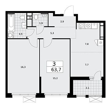 Купить 3к квартиру 70 м² в ЖК Тринити