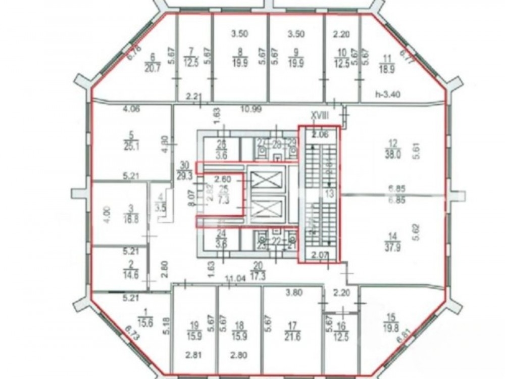 . Офис занимает весь этаж, общая площадь 410м2, 17 кабинетов, 2 с/у и 2 кухни. Есть возможность разделить на 2 блока с отдельными входами.В здании 4 лифта, приточно-вытяжная система вентиляции и центральное кондиционирование.
