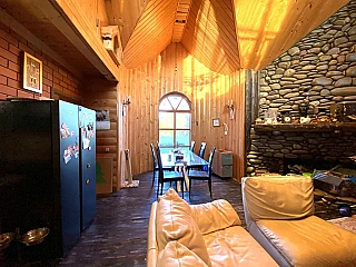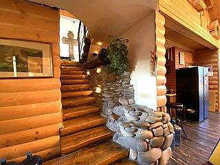 Кровля - металлочерепица с утеплением, окна - пластиковые стеклопакеты, фундамент ленточный, монолитный. Перекрытия - железобетон. На первом этаже - Кухня- столовая, отделена от гостиной большой, красивой печью - камином, спальня и санузел. Второй этаж - три спальни и санузел. Первый этаж полностью жилой, меблирован, оборудован бытовой техникой. Второй - выполнена отделка "Вайт бокс".